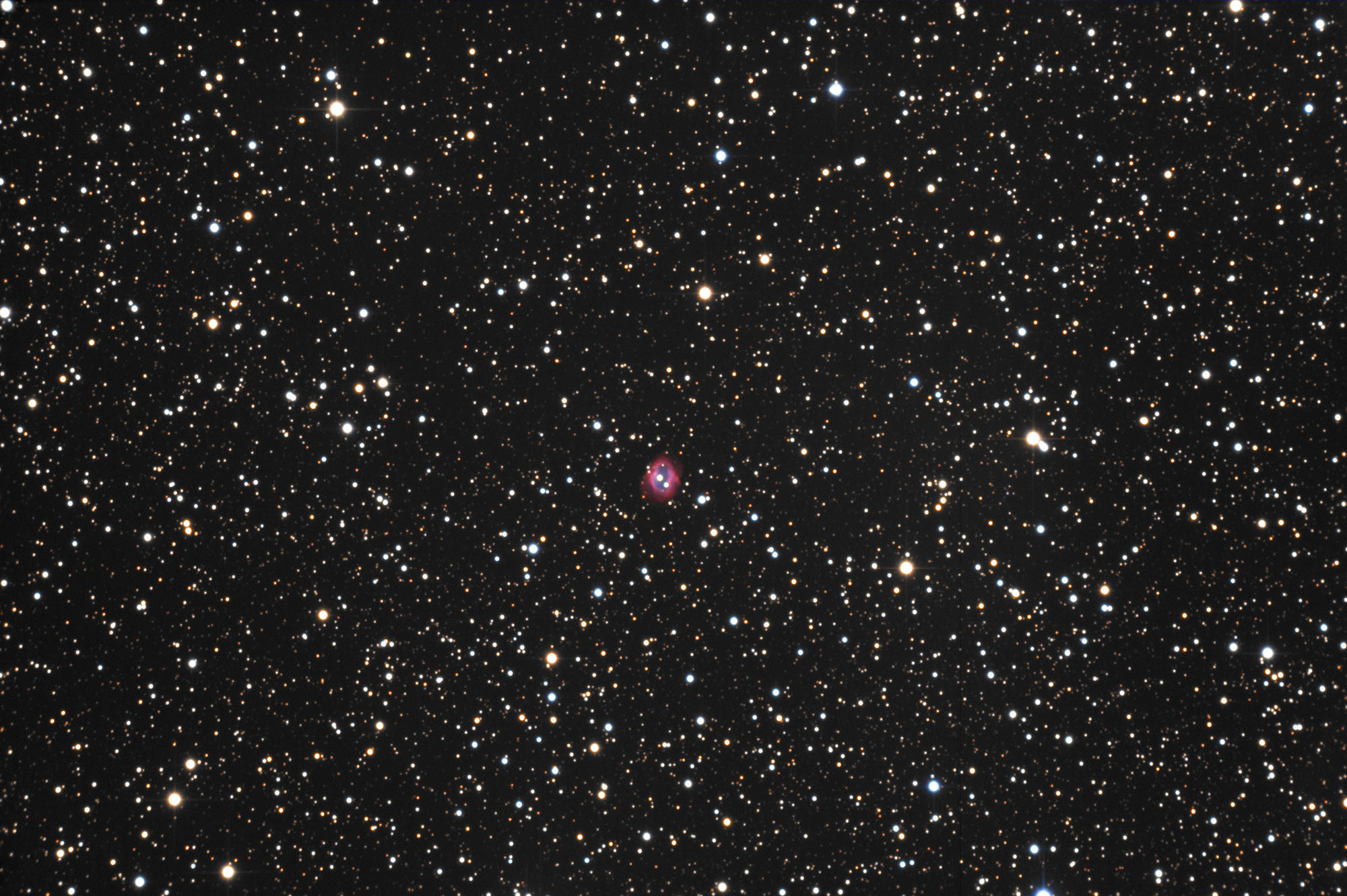 The planetary nebula was discovered in 1947 by the German-American astronomer Rudolph Minkowski. He detected objects with little or no continuous H-α spectrum on objective-prism survey plates obtained by W. C. Miller using the 10-inch telescope at Mount Wilson. Further examination of its appearance on direct photographs, taken at the Newtonian focus of the 60-inch or 100-inch telescope on Mount Wilson, revealed its nature as a planetary nebula. Minkowski also contributed to the creation of the National Geographic Society - Palomar Observatory Sky Survey (POSS). [397, 454]