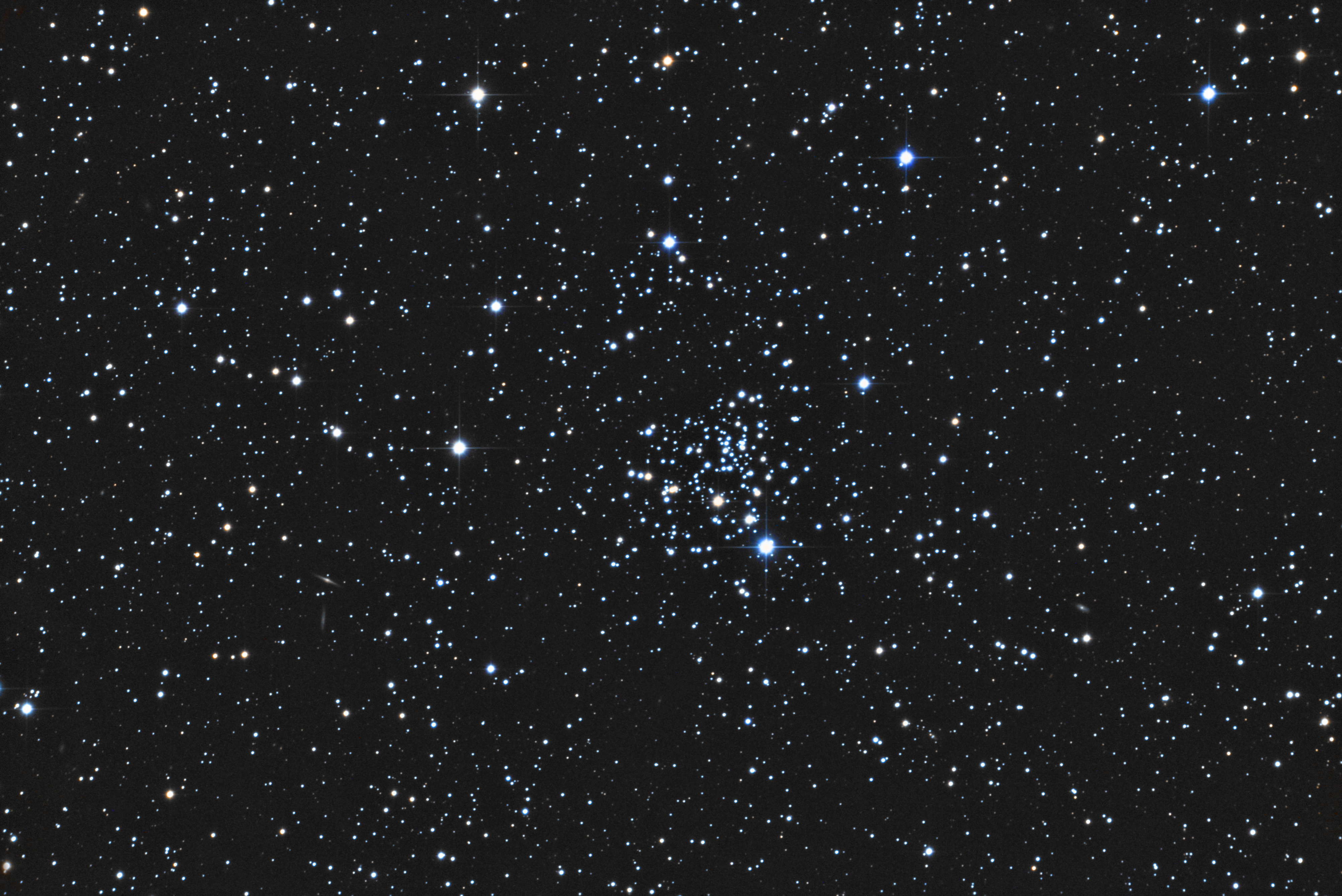 400 mm aperture: It's a pretty unspectacular open cluster with three brighter stars in a row. — Taurus T400 f/4.5 Dobsonian, Bernd Nies, Glaubenberg Langis, 28 February 2022