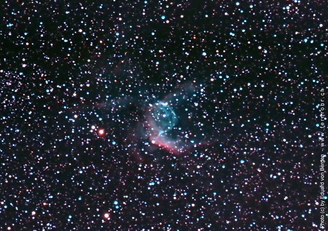 NGC 2359: Thors Helm in Canis Maior; Vixen ED-Apochromat 115 mm f/7.7; Canon EOS 20Da; 6 x 483 s, 1600 ISO; Langis, Glaubenbergpass; © 31. 1. 2006 Eduard von Bergen [29]