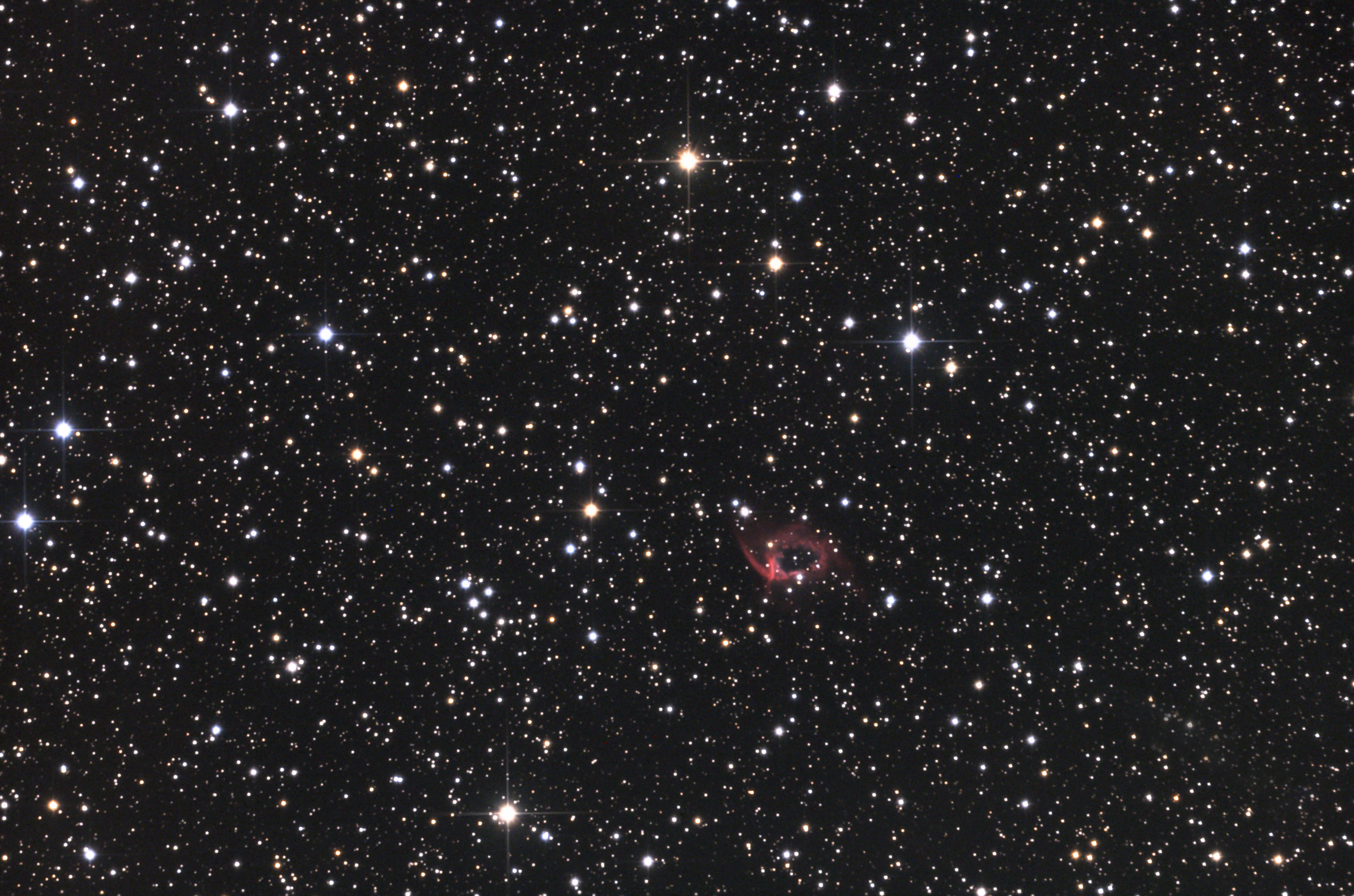 Abell 79 ist ein ungewöhnlich geformter planetarischer Nebel. Er besteht aus einem unregelmäßigen und verbreiterten ovalen Ring, aus welchem schwache, entgegengesetzt gerichtete Lappen hervorgehen, die fast im interstellaren Medium verschwunden sind. Eine ausgeprägte Asymmetrie zeigt sich in der Oberflächenhelligkeit des Nordlappens: Die Nordostseite ist viel heller als die andere. Der vermutlich kreisförmige Ring ist um 49 Grad mit der Nordseite in unsere Richtung geneigt. Seltsamerweise ist der Zentralstern ein relativ kühler Zwergstern, der nicht in der Lage ist, die in seinem Spektrum sichtbare ionisierende Strahlung zu produzieren, was einen unsichtbaren, heißen Begleiter vermuten lässt. [207]