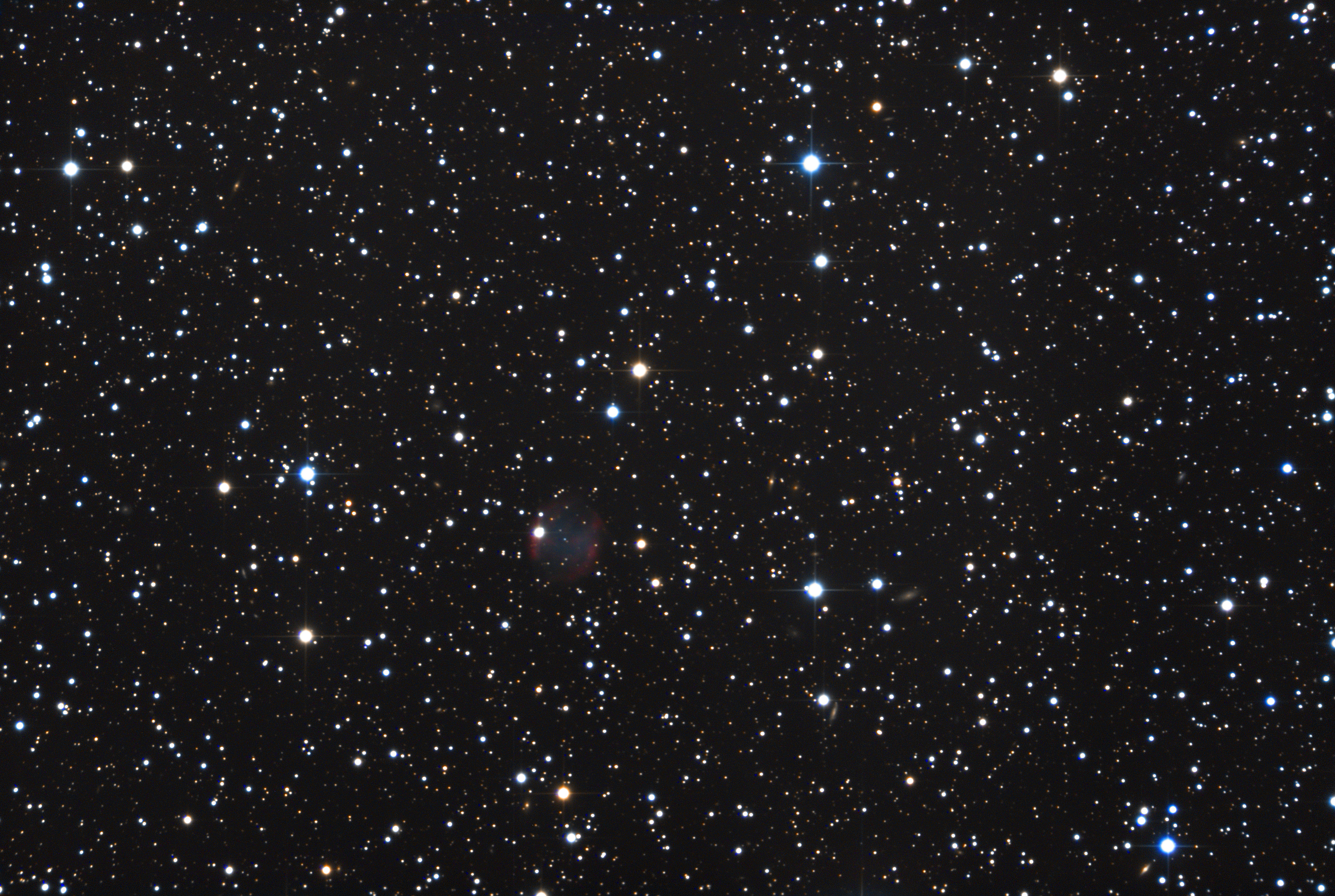 The planetary nebula Abell 84 (PN A55 70, PN A66 84, PK 112-10.1, PN ARO 115) was discovered in 1955 by the American astronomer George Ogden Abell on the photo plates of the «Palomar Observatory Sky Survey» (POSS ) discovered. Most of these 86 PNs discovered on the POSS photo plates are large and have a low surface brightness, which suggests that their stage of development is advanced. Abell described the PN as an asymmetrical ring with bright spots or regions 147x114" in diameter. [331, 332]