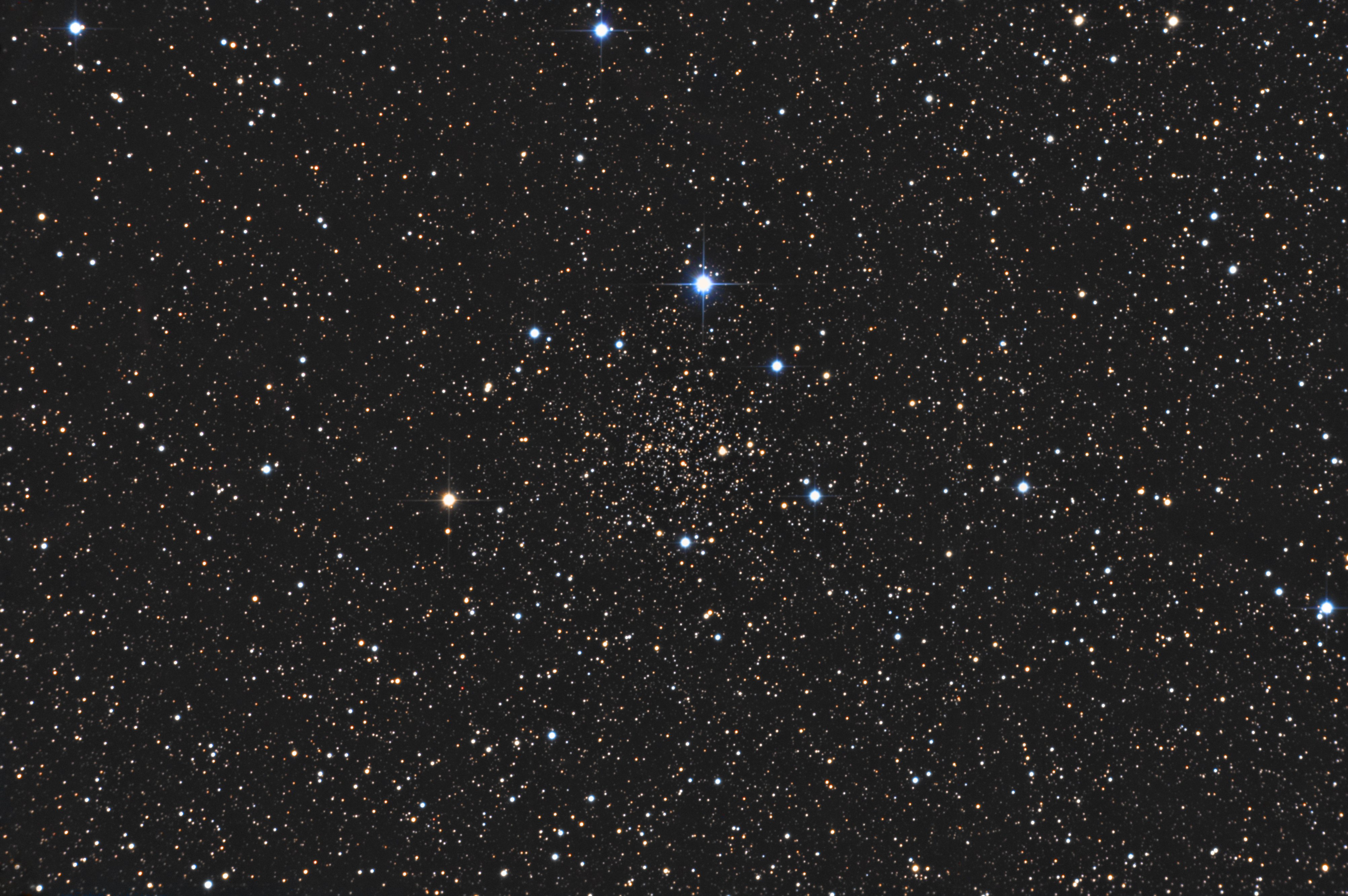762 mm Öffnung: Der feine offene Sternhaufen IC 1311 lässt sich nur mit einer kleinen Vergrösserung bzw. mit einem Tele Vue Ethos 17 mm aus der Reserve locken. In einem hellen Sternenkreis glimsen eine Vielzahl feinster Sternchen hervor. Sie zeigen sich wesentlich vermehrter und dichter als die feinen Sternchen des umliegenden sternenreichen Hintergrundes. — 30" f/3.3 SlipStream Dobsonian, Hasliberg, 18. 10. 2025, SQM-L 21.02, Eduard von Bergen