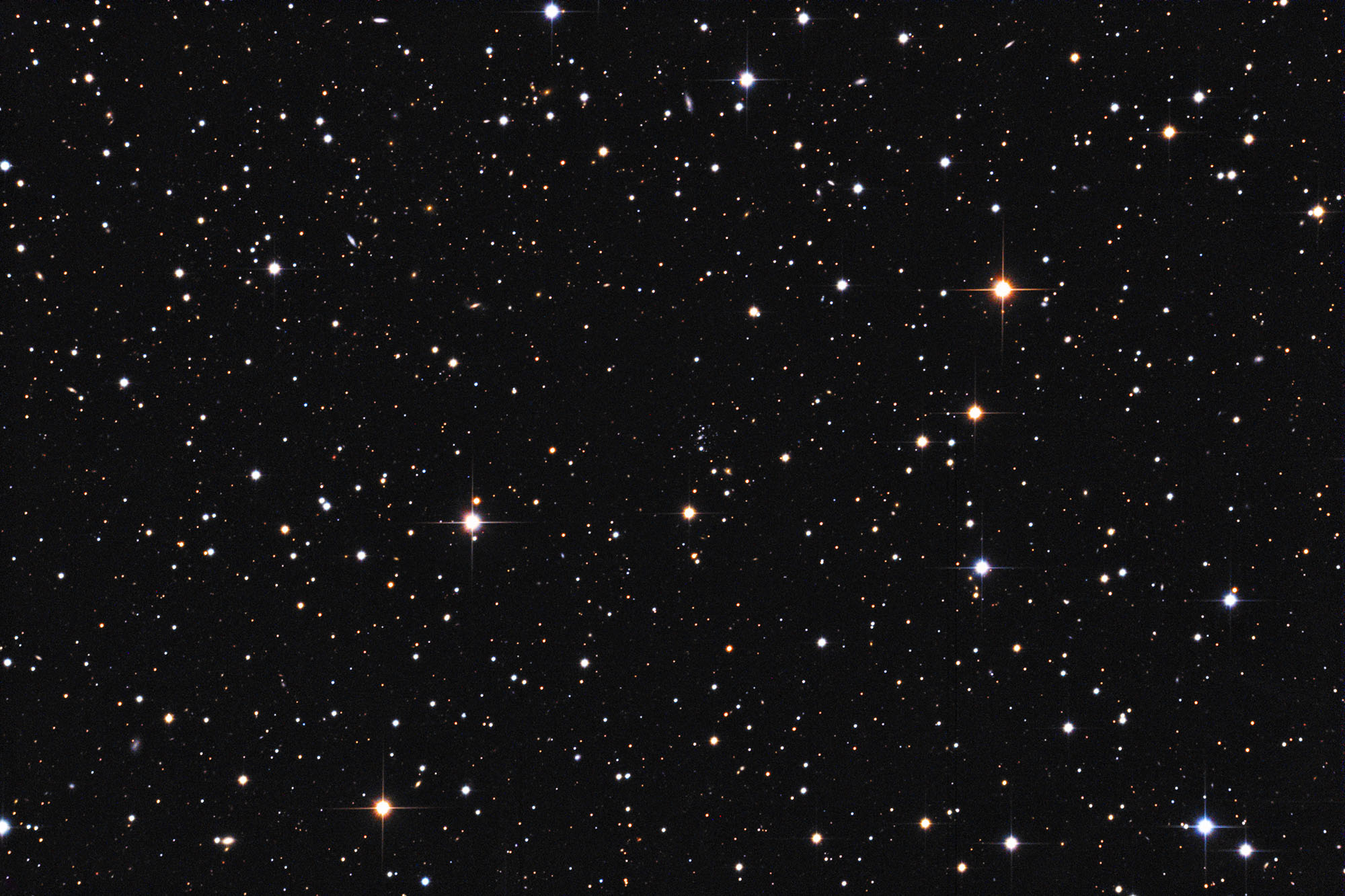 The globular cluster is about 33.3 kpc (109'000 light years) away from us and 26.3 kpc (85'800 light years) from the galactic centre in the halo of the Milky Way. The diameter of the cluster is about 3 pc (just under 10 light years). Near the centre of Koposov 2 we see through it onto a distant background galaxy.