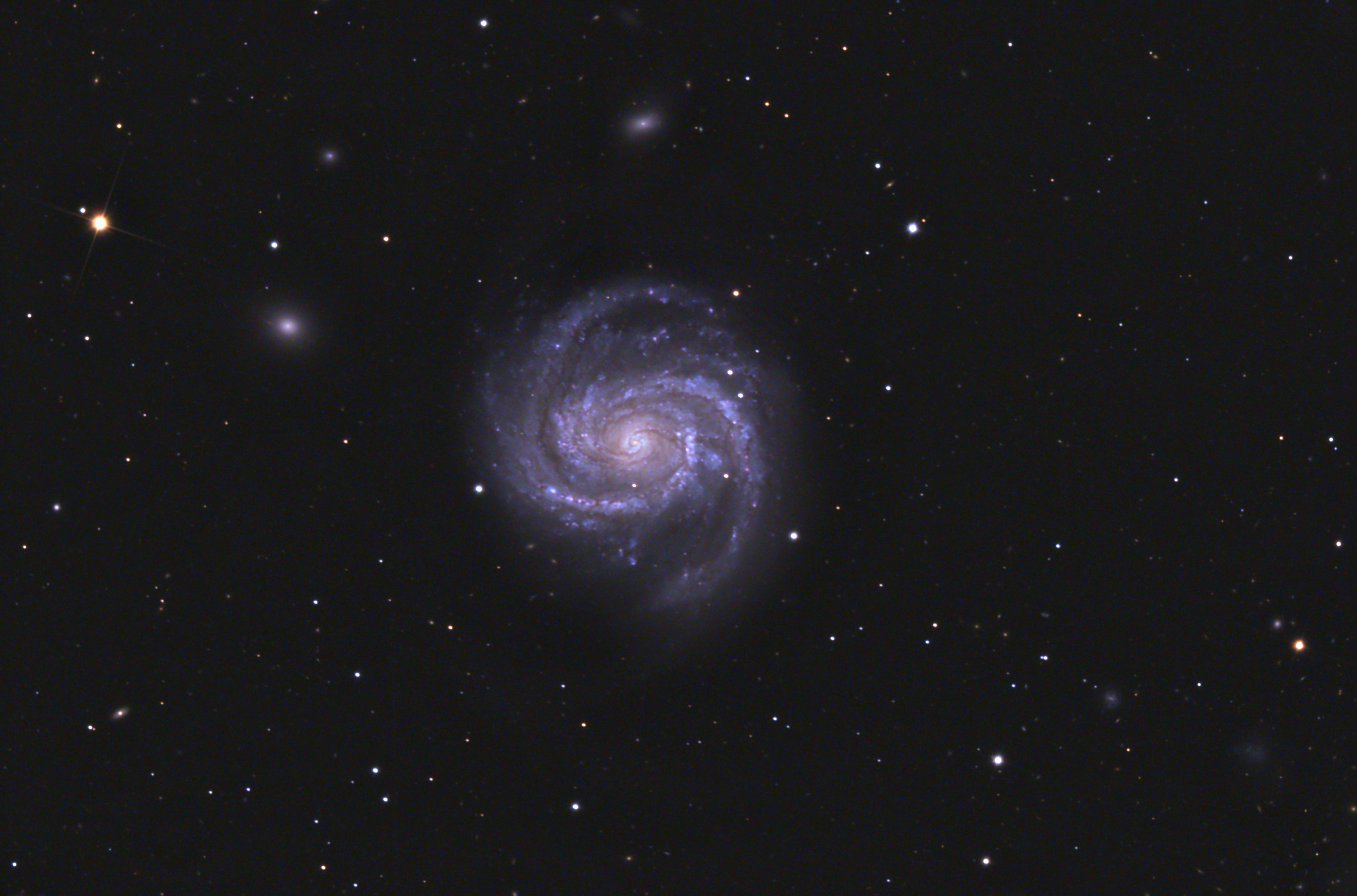 Es handelt sich hier um eine Galaxie des morphologischen Typs SAB(s)bc, eine Zwischenform von Spiralgalaxie und Balkenspirale, nach dem erweiterten Hubble-Klassifikationsschema nach de Vaucouleur. Distanzmessungen mit unterschiedlichen Methoden variieren von 11.0 Mpc bis 27.6 Mpc bei einem Mittelwert von 16.2 Mpc (52.8 Millionen Lichtjahre). M 100 hat einen aktiven Kern, eine helle Region im Zentrum, verursacht durch ein supermassives Schwarzes Loch, welches Materie verschlingt. In den Spiralarmen befinden sich auch kleinere Schwarze Löcher, inklusive den Überresten von fünf seit 1900 beobachteten Supernovae. Die letzte war SN 2006X, eine Typ Ia Supernova. [145, 194, 215]