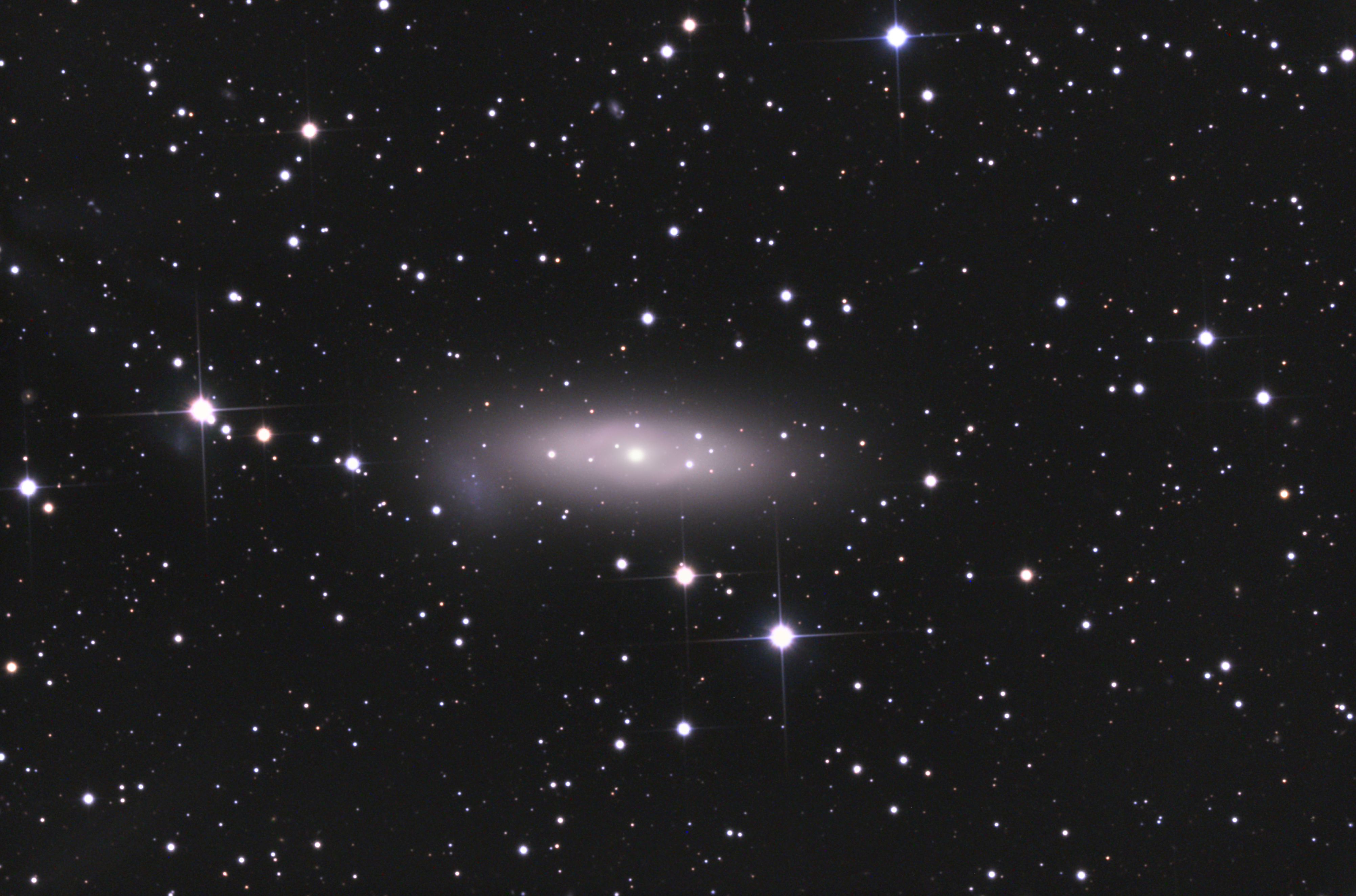 Im Zentrum dieser Galaxie des morphologischen Typs SB(rs)0- befindet sich ein supermassives schwarzes Loch mit etwa 40 bis 60 Millionen Sonnenmassen. Die Entfernung von NGC 1023 beträgt etwa 11 Mpc. [428] Die Galaxie ist das hellste Mitglied der LGG 70 Galaxiengruppe. Der am nächsten gelegene Begleiter ist die magellansche, irreguläre Zwerggalaxie NGC 1023A etwa 2.7 Bogenminuten östlich des Zentrums von NGC 1023, was einer projizierten Distanz von ewa 8 kpc entspricht. Die beiden Galaxien sind durch eine Brücke von neutralem Wasserstoff verbunden, was auf eine laufende Interaktion hindeutet, welche vor etwa zwei Milliarden Jahren angefangen hatte. [429]