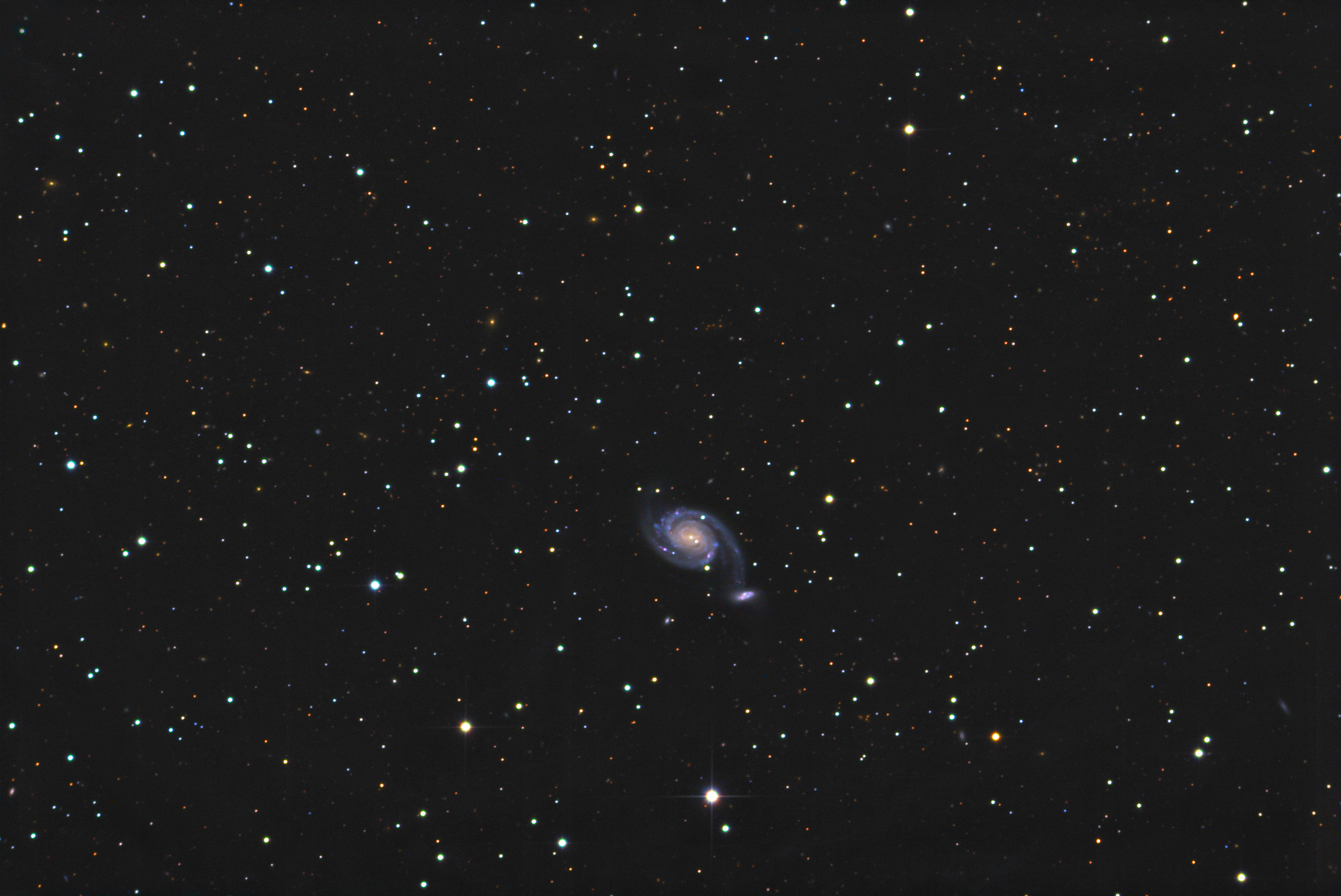 Die beiden Galaxien stehen in gravitativer Wechselwirkung zueinander und befinden sich in etwa 70 Mpc Entfernung. [145, 439]